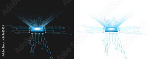 Wall mural : Microchip with circuit line blue with light spot futuristic design transparent background