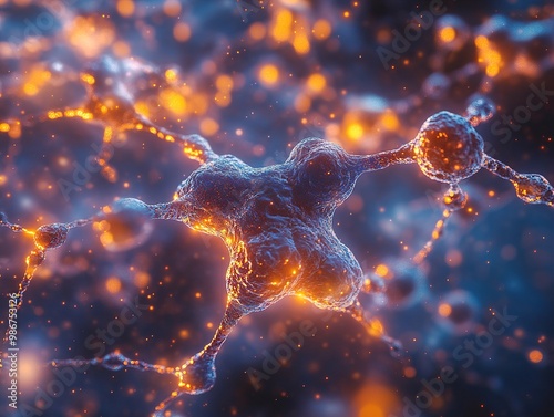 The watermark will not be included on Wall mural.: Microscopic neuron network: a glowing abstract view of the brain
