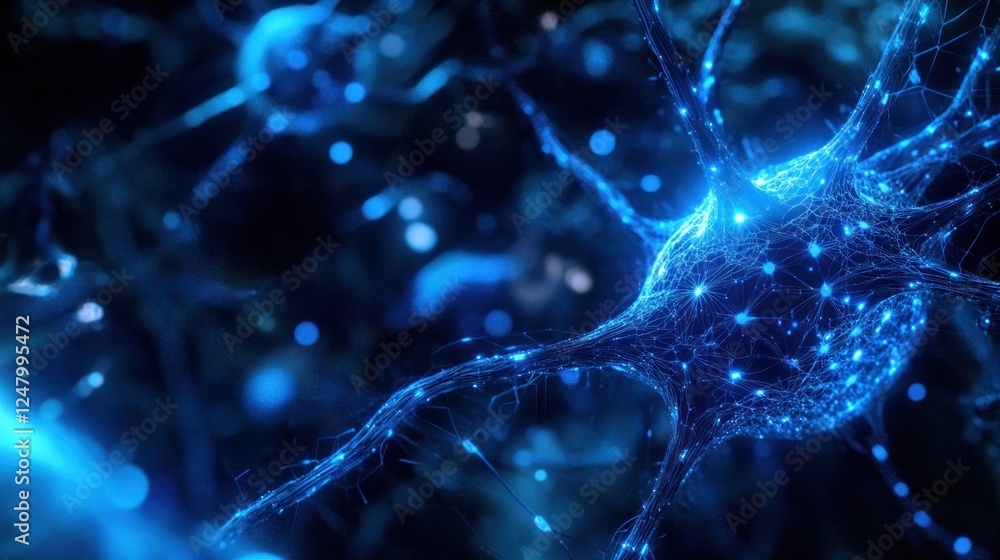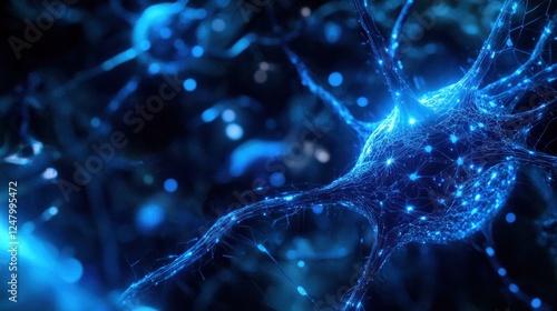 Wall mural microscopic view of a glowing blue neuron with intricate network of connections and synapses. - Wall murals Wall mural microscopic view of a glowing blue neuron with intricate network of connections and synapses. - Wall murals