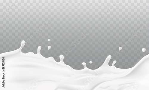 The watermark will not be included on Wall mural.: Milk splash seamless pattern isolated on transparent background - 3d realistic yogurt wave border - ve