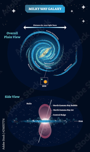 Wall mural : Milky way galaxy vector illustration - educational and labeled scheme with overall plain view and spu