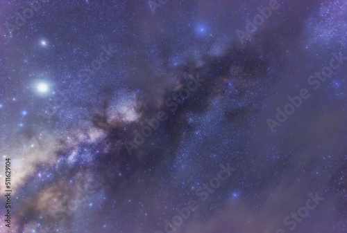 Wall mural milky way galaxy with stars and space dust in the universe, long speed exposure, night landscape wit