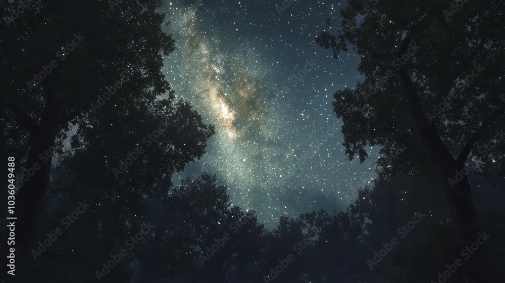 The watermark will not be included on Wall mural.: Milky way over silhouetted trees