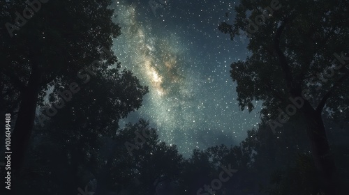Wall mural milky way over silhouetted trees - Wall murals Wall mural milky way over silhouetted trees - Wall murals