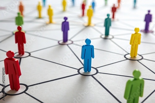 The watermark will not be included on Wall mural.: Miniature people figures arranged in networking pattern showing social connectivity concept