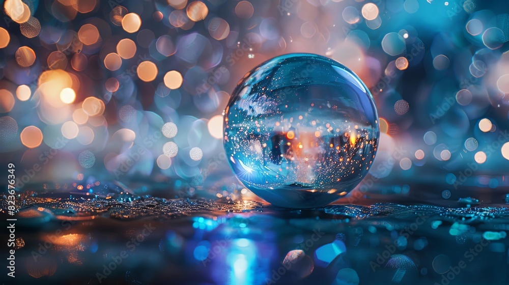 The watermark will not be included on Wall mural.: Miniature universe encapsulated in delicate glass sphere ai generated abstract background