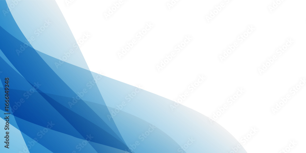 The watermark will not be included on Wall mural.: Minimal abstract background with overlapping translucent blue waves on the left and white space on t