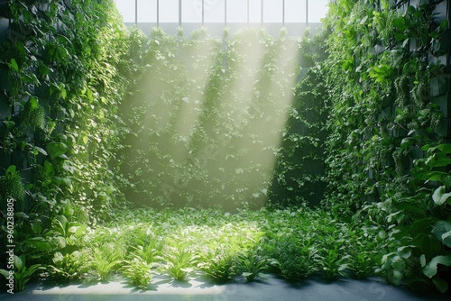 Wall mural minimal ai-controlled smart farm with vertical gardens, soft morning light, abundant empty space for - Wall murals Wall mural minimal ai-controlled smart farm with vertical gardens, soft morning light, abundant empty space for - Wall murals