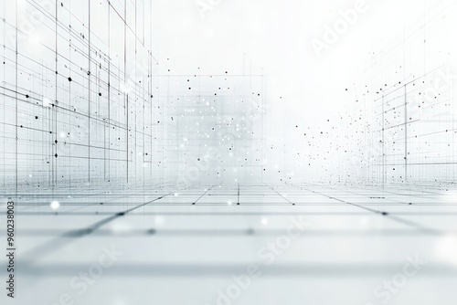 The watermark will not be included on Wall mural.: Minimal ai-controlled smart grid interface on a clean white screen, soft light, ample blank space su