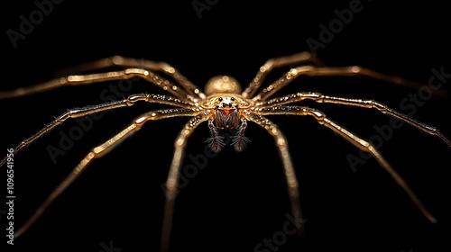 Wall mural minimal black background emphasizing a golden spider's delicate web creation - Wall murals Wall mural minimal black background emphasizing a golden spider's delicate web creation - Wall murals