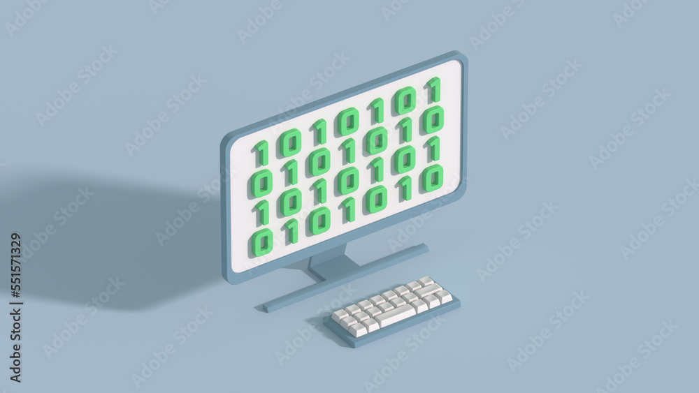 The watermark will not be included on Wall mural.: Minimal computer with digital code isometric 3d render illustration
