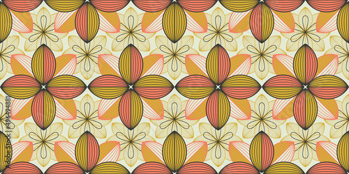 Wall mural minimal flowers texture seamless pattern. repeating simple geometrical shapes modern background.