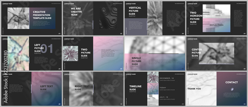 Wall mural minimal presentations design, portfolio vector templates with elements on black background. multipur