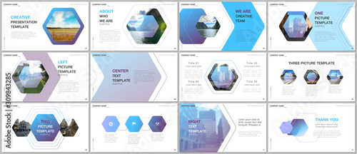 Wall mural : Minimal presentations design, portfolio vector templates with hexagonal design background, hexagon s