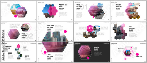 Wall mural : Minimal presentations design, portfolio vector templates with hexagons and hexagonal elements - multi