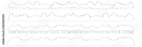 Minimal style cad tree line drawing, side view, set of graphics trees elements outline symbol for arWall mural