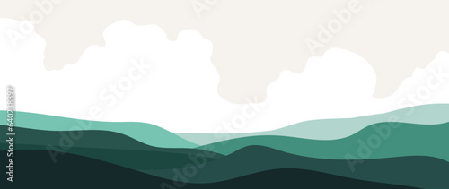 Wall mural minimal vector abstract landscape with clouds. mountain background in blue tones. vector design for