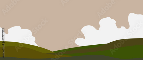 Wall mural minimal vector abstract landscape with clouds. mountain background in green colors. vector design fo