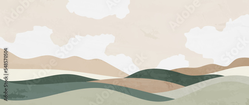 Wall mural minimal vector abstract landscape with clouds. mountain background with a watercolor texture in eart