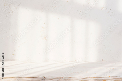 Wall mural minimal wooden top counter mockup design for product presentation on abstract wall texture backgroun
