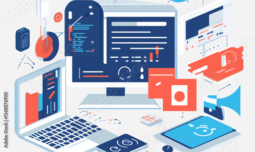Wall mural : Minimalist ai content creation with technology elements in flat vector design