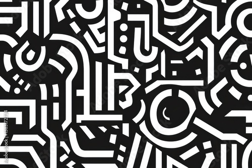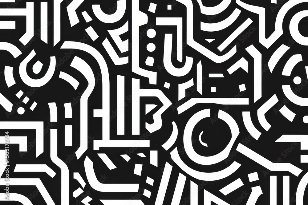 The watermark will not be included on Wall mural.: Minimalist black and white abstract pattern with fine lines and smooth spacing, showcasing modern di