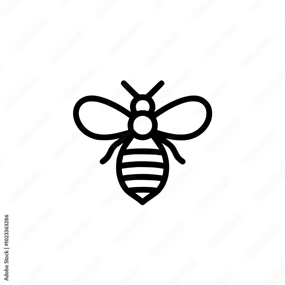 The watermark will not be included on Wall mural.: Minimalist black and white bee icon with simplistic lines and clear outline on a plain background -