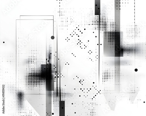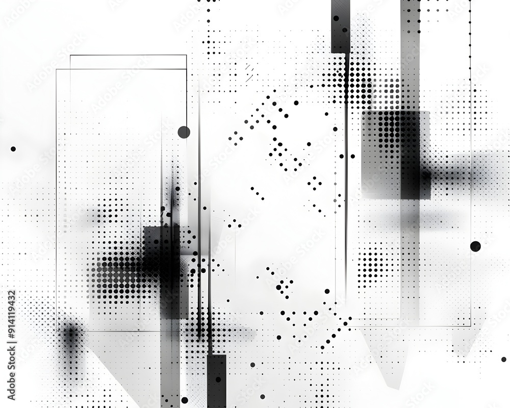 The watermark will not be included on Wall mural.: Minimalist black and white frame with thin lines and dots clean and elegant design concept