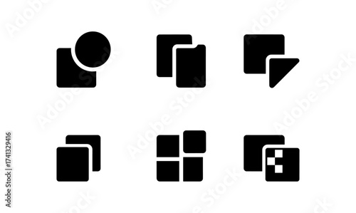 Wall mural : Minimalist black icon set of overlapping squares and shapes