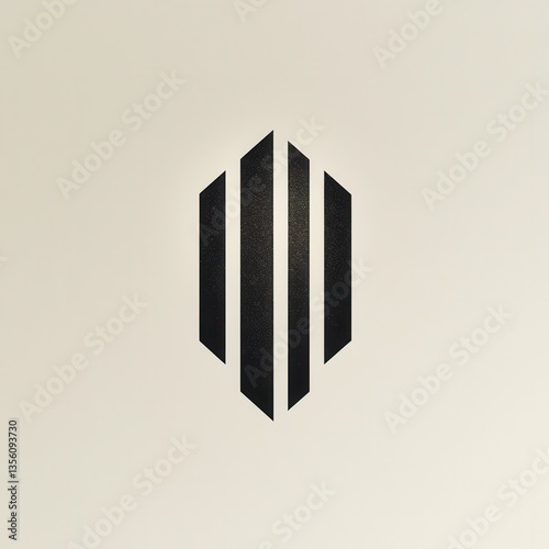 The watermark will not be included on Wall mural.: Minimalist black icon with vertical stripes on a soft off-white background for modern design concept