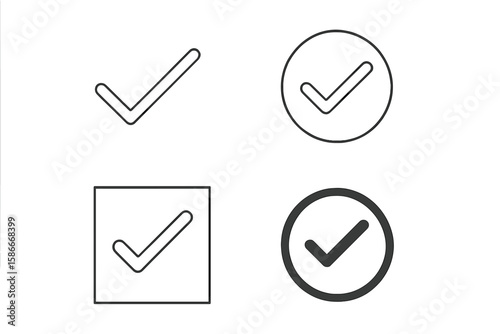 Wall mural : Minimalist check mark icon collection – thin line and bold filled approved symbols, circular and squ