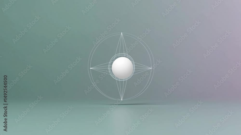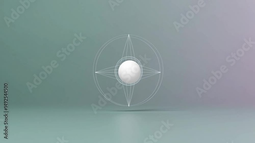 Wall mural minimalist composition featuring a white sphere suspended within an intricate wireframe structure, c - Wall murals Wall mural minimalist composition featuring a white sphere suspended within an intricate wireframe structure, c - Wall murals