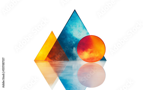 The watermark will not be included on Wall mural.: Minimalist geometric composition featuring colorful shapes and abstract design elements isolated on