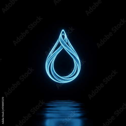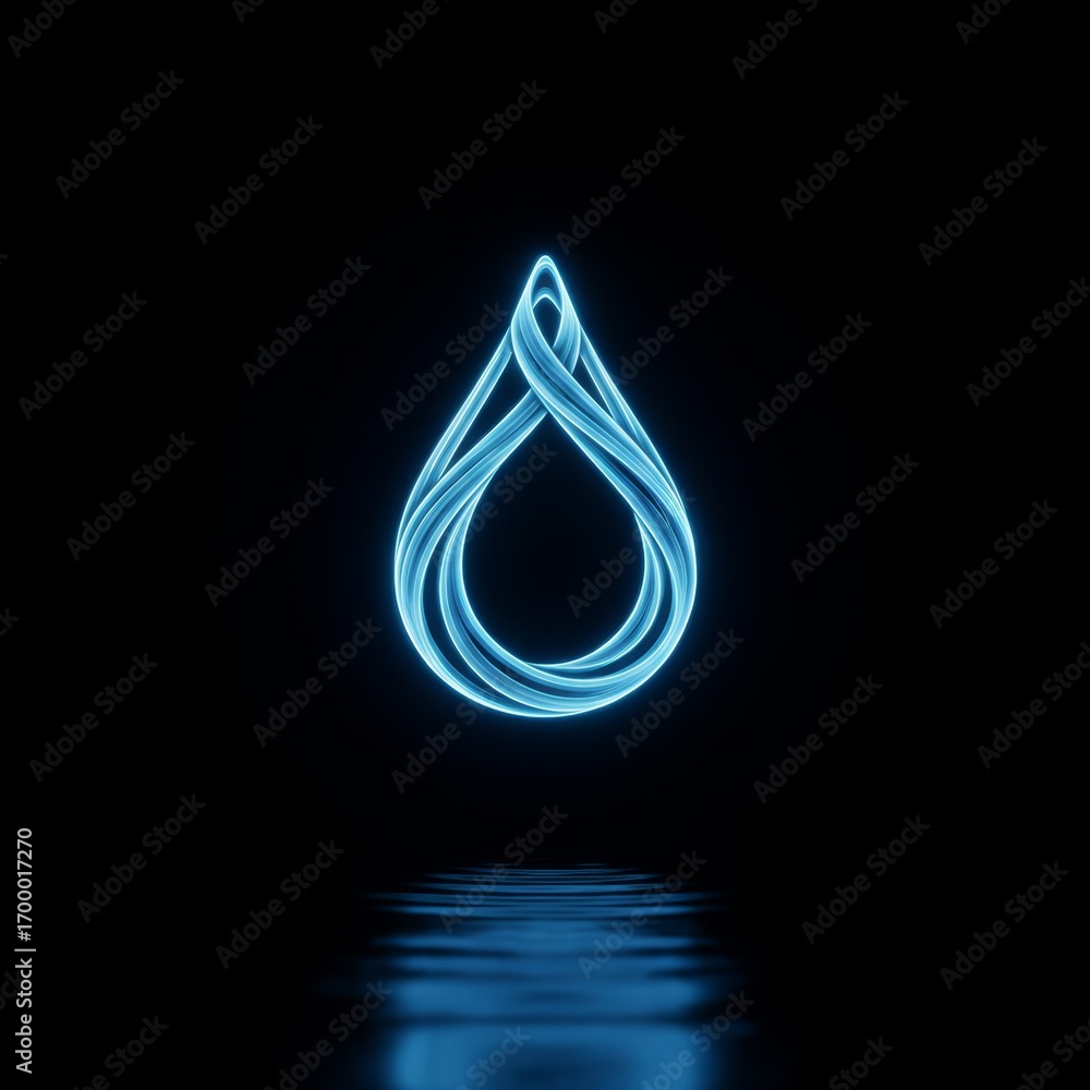 The watermark will not be included on Wall mural.: Minimalist glowing water droplet icon floating above calm surface in ultra hd with upscale 4x resolu