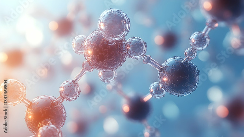The watermark will not be included on Wall mural.: Minimalist molecular network illustration with abstract floating molecules, soft gradients and a lig