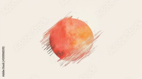 Minimalist pencil strokes create a vibrant circular design in warm tones on a soft backgroundWall mural