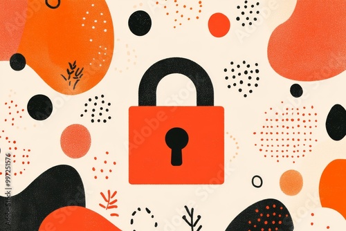 Wall mural minimalist red and black abstract padlock illustration featuring circular patterns representing encr - Wall murals Wall mural minimalist red and black abstract padlock illustration featuring circular patterns representing encr - Wall murals