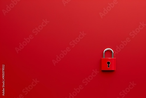 The watermark will not be included on Wall mural.: Minimalist red background with a simple padlock icon, showcasing modern digital security in a clean