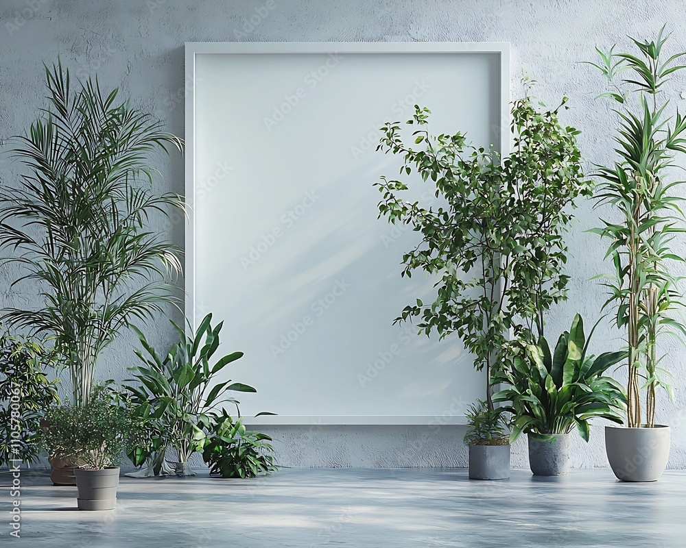 The watermark will not be included on Wall mural.: Minimalist square metal frame hovering against plain white background