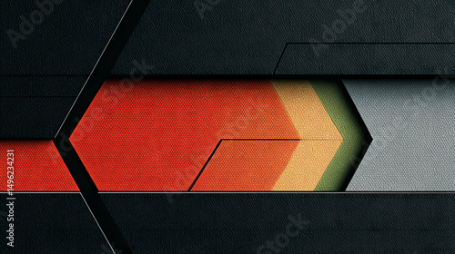The watermark will not be included on Wall mural.: Minimalist tech background with raised hexagon and rainbow illuminated edge - black surface with embo