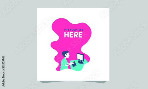 Wall mural minimalist vector flat character design on businessman working in office behind her desk with comput - Wall murals Wall mural minimalist vector flat character design on businessman working in office behind her desk with comput - Wall murals