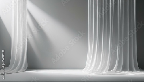 The watermark will not be included on Wall mural.: Minimalistic abstract gentle light grey background for product presentation with light and shadow of