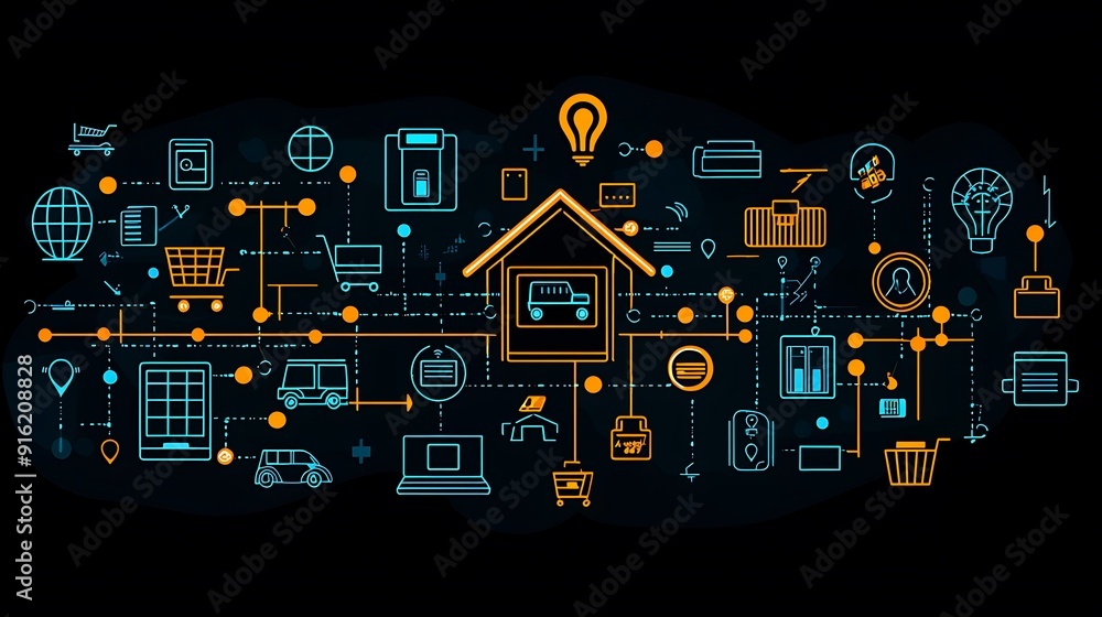 Wall mural : Minimalistic flat vector icon of a house with a network connection symbol, perfect for business and