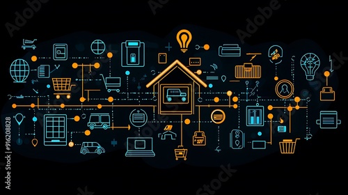 Wall mural minimalistic flat vector icon of a house with a network connection symbol, perfect for business and  - Wall murals Wall mural minimalistic flat vector icon of a house with a network connection symbol, perfect for business and - Wall murals