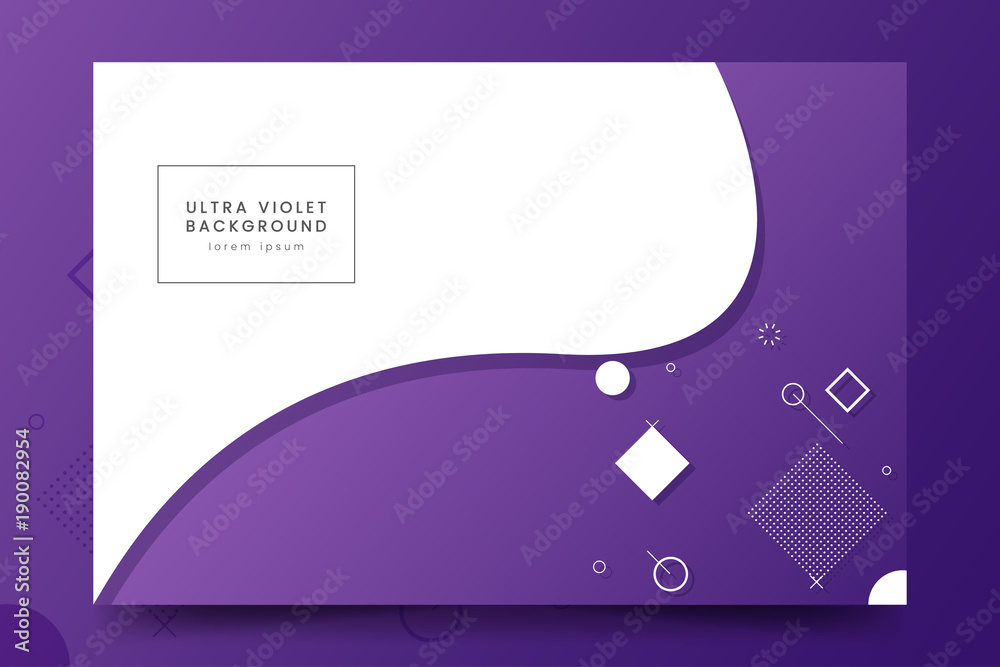 Wall mural : Minimalistic horizontal background with purple wave and geometric figures - trendy ultraviolet poster
