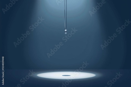 The watermark will not be included on Wall mural.: Minimalistic lighting design featuring a reflective drop suspended above a spotlight area creating a