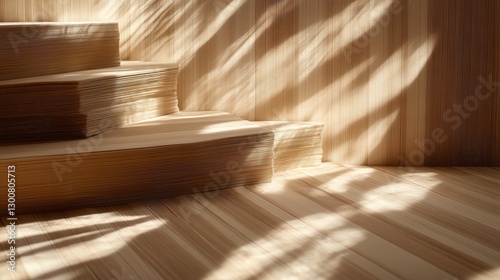 The watermark will not be included on Wall mural.: Minimalistic packaging display with realistic textures