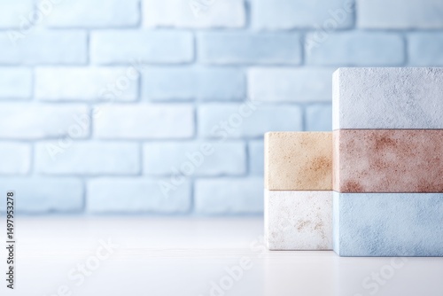 The watermark will not be included on Wall mural.: Minimalistic scene featuring textured wall surfaces in various styles with ample copy space availabl