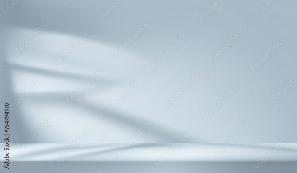 Minimalistic simple abstract light blue background for product presentation - shadow and light from wWall mural