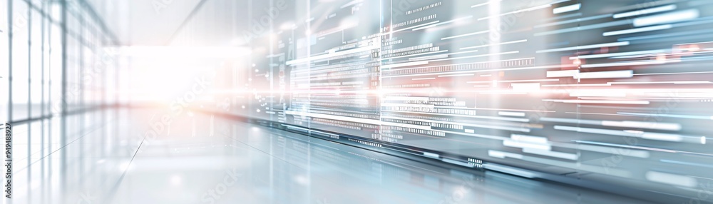 The watermark will not be included on Wall mural.: Minimalistic technology-themed background with geometric shapes and dynamic light effects, creating